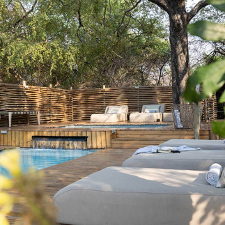 The main lodge opens onto sweeping river views framed by waterberry trees, where guests can relax on deep sofas or cool off in the pool. Throughout, natural ventilation, low-impact tented structures, and a palette of earth tones and organic materials ensure the camp feels part of the island’s fabric.